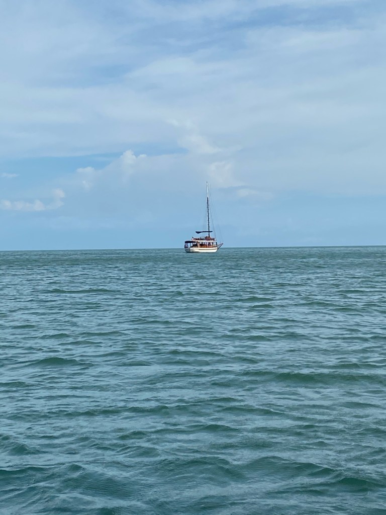 We were going on an afternoon/evening sail out of the Royal Langkawi Yacht Club in Kuah. Our concierge was very concerned about “traffic” for us to get there. I guess there was a cycling race going on. We never saw any cyclists and not much traffic other than scooters with lax safety laws. It was interesting seeing the island outside the resort. As with most islands, the locals don’t live like the guests at the resorts. Lots of scooters, simple concrete homes with metal roofs, more monkeys. Also lots of potentially interesting roadside food stands. As we were eating on the boat we didn’t stop, but it would be fun to ride on a scooter and check some out! We also saw schools (the kids were in school on a Sunday, not sure why) and mosques as Malaysia is a Muslim country. The town of Kuah was more “urban” looking with less roadside stands and more restaurants. They even had the ubiquitous American exports, Macdonald’s, Starbucks and 7-11.