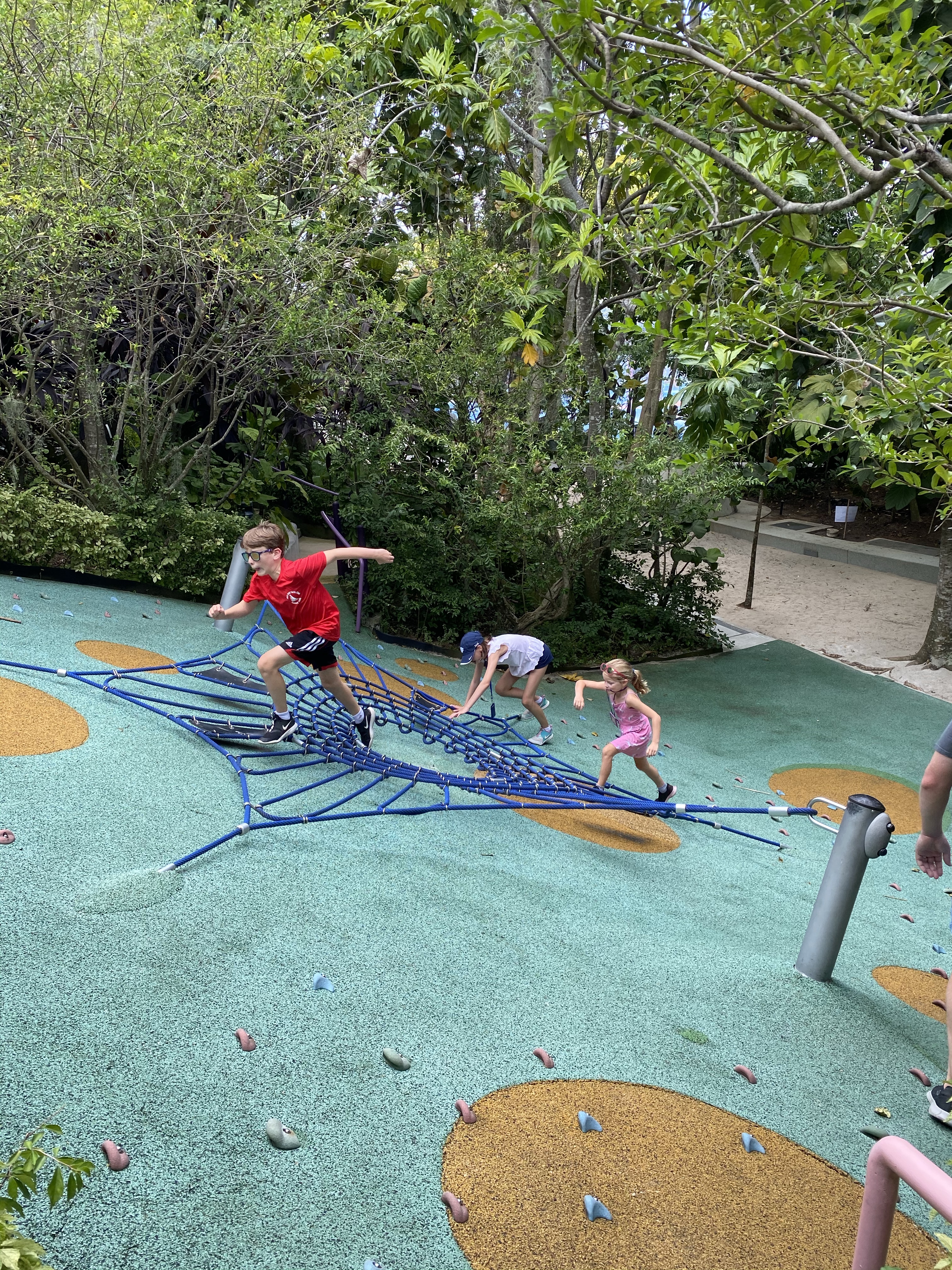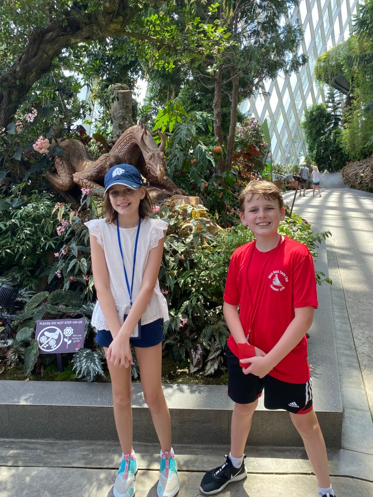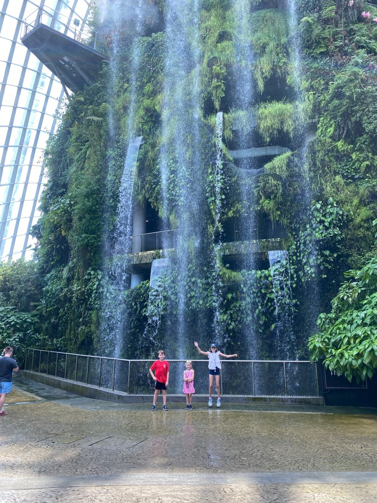 We then debated what to do and ended up reading down to gardens by the bay. This is typically PACKED with tourists. We went in both of the bio domes and played in the children’s garden with very few people. Both awesome and eerie.