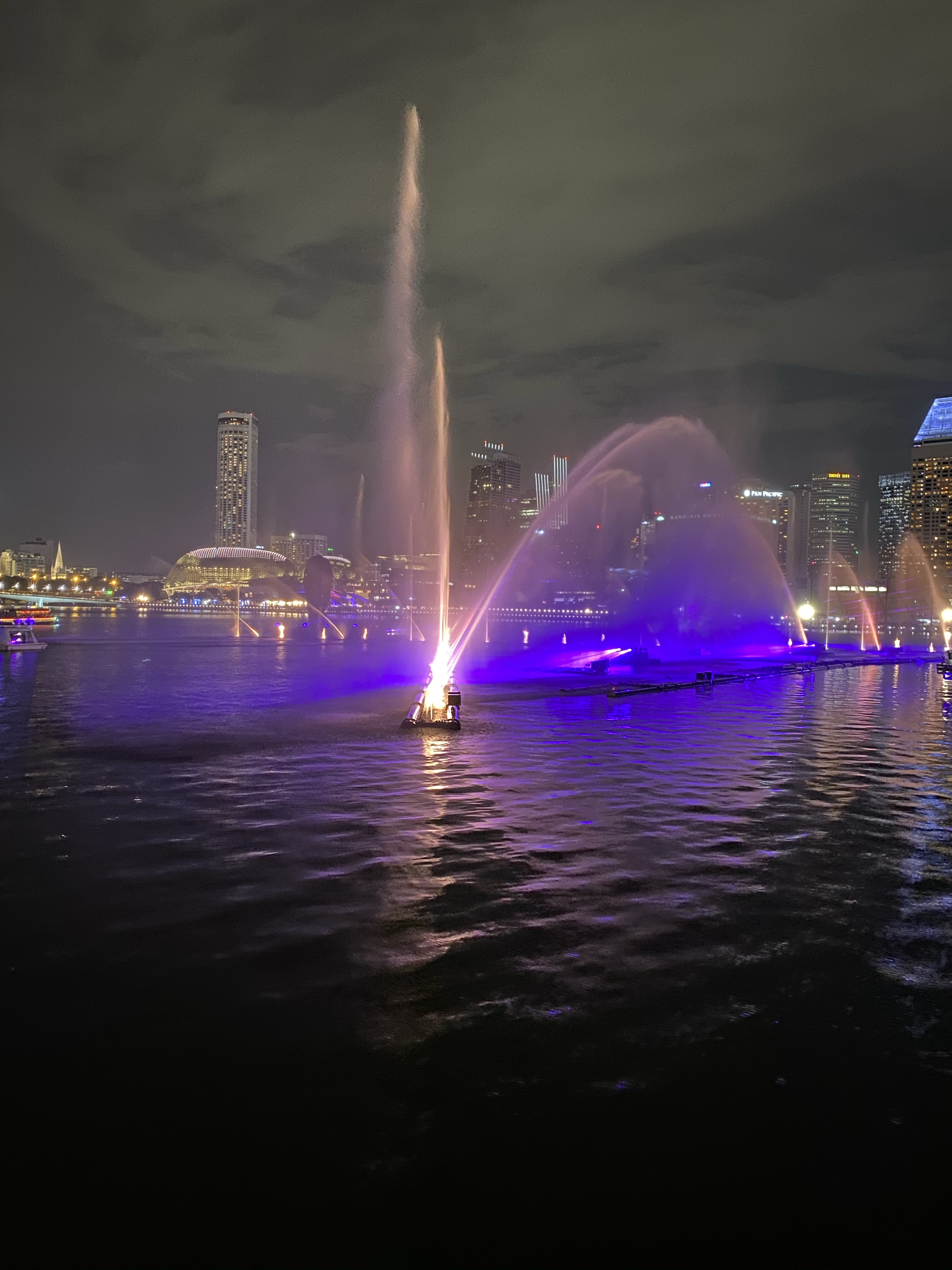 Each night at 8pm (and Friday & Saturday at 8,9&10pm) there is a music choreographed master light show from the bay and the top of marina bay sands. We saw it one night after having dinner at marina bay with the music. We were on the back side of it (ideal viewing is from the Merlion) but it was still pretty great. We also can see it lasers on the top of marina bay sands every night at 8pm. Avery and I like to watch together.
