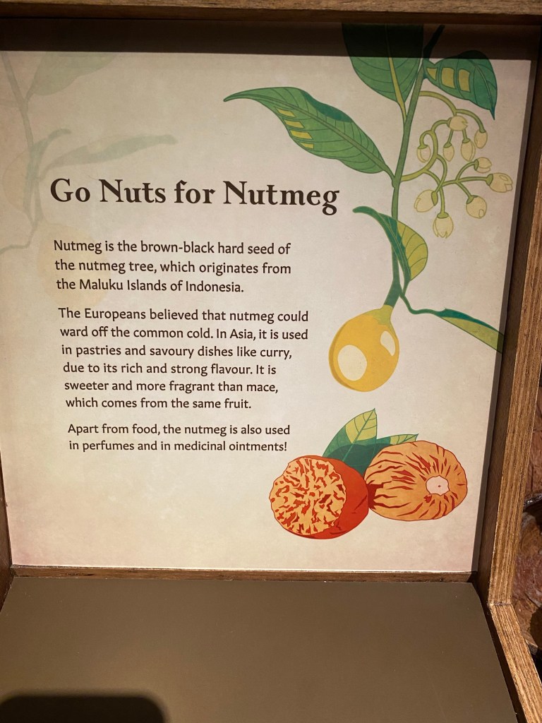 Until I figure out what I need to do here to find my community, at the advice of the very sage Allison, Iām taking myself on an outing at least once a week. Last week I went to the national museum of Singapore. I loved it. I will take Ryan and the kids back, but it was nice to go on my own and look at what I want, at the pace I want. This is where the above nutmeg pic came from. They have a wonderful exhibit on the 200 year period prior to the British colonization in 1819 by Stamford Raffles. Everything in this museum is beautifully done. They are very adept here at using mixed media. 2 displays really were impactful to me. One was a āmovieā that was 180 degrees around you and was animated in a painting kind of way. It was documenting the first European making contact with this area in roughly 1600. it was beautiful and made you feel how it was to be there. The second display I loved was in the regular part of the museum. It was describing the changing times for women in the 1920s and 30s. You stood in between 2 mirrors. On one side, a ātraditionalā girl or woman would tell you a little blurb about their life. Next, the other mirror would have another girl or woman that was more modern tell a little blurb about her life. Contrasting the different lives women were leading at the time. You moved between 3 sets of these mirrors. So cool.