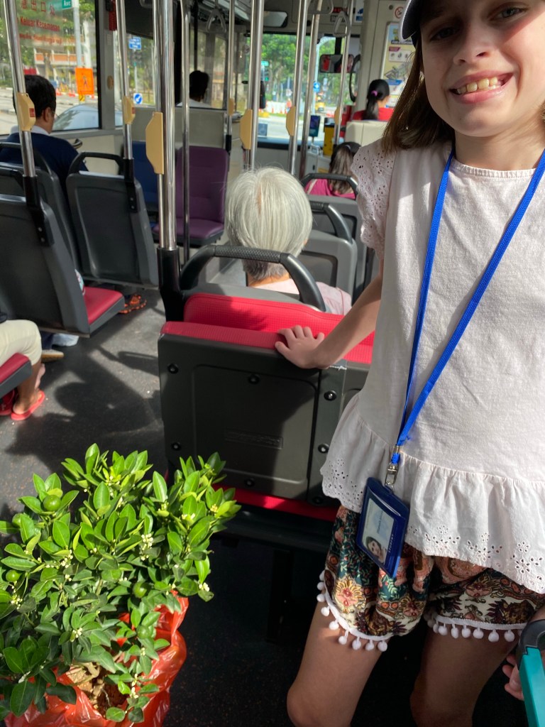 Transporting our new lime tree plant home on the bus. We couldnāt decide if it was easier to go by bus or Grab…