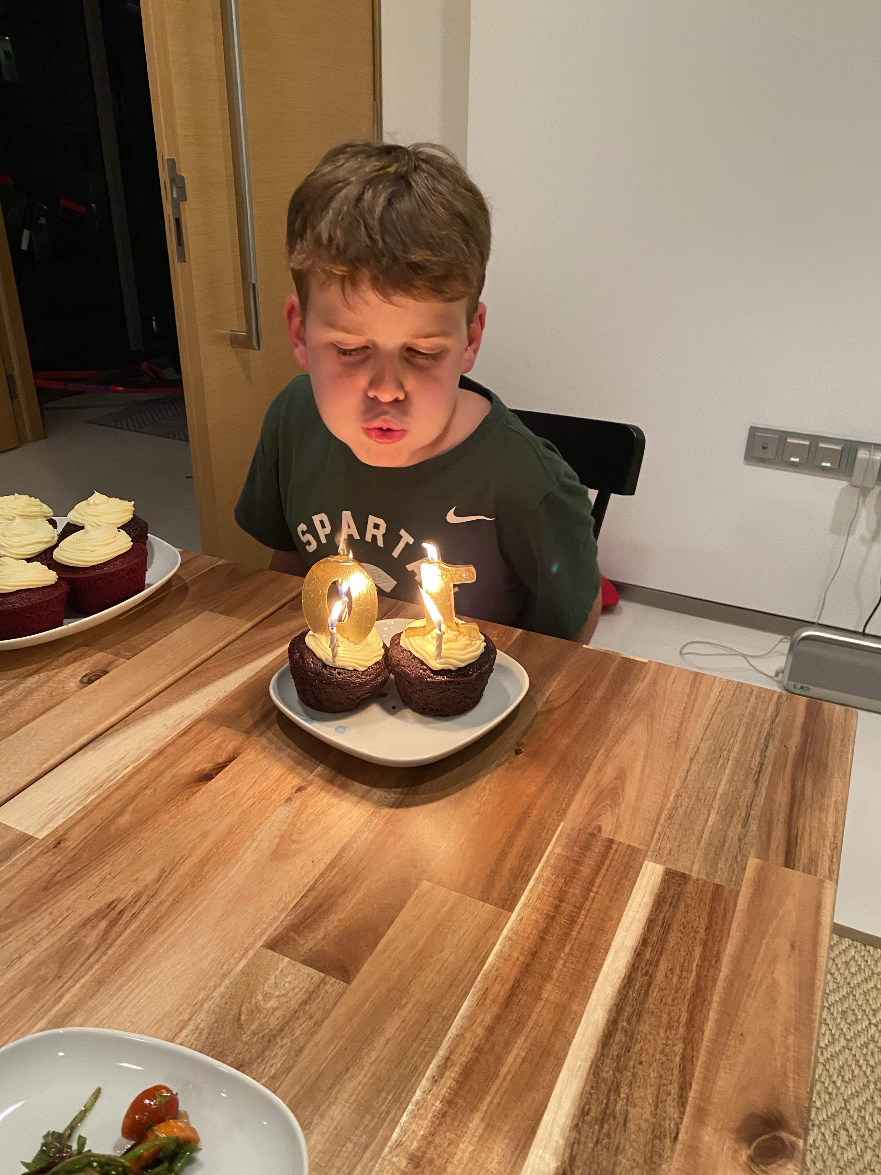 All ready to celebrate! Note Liamās gym uniform peaking out… ready for a quick change.