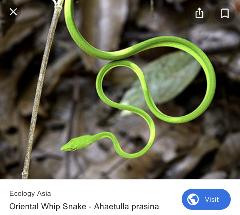 Dempsey hill is filled with cute restaurants and shops. I wandered around a bit and got a little lost. Somehow I ended up behind a restaurant on a boardwalk. Then it happened. I have no pictorial evidence but there was a long, thin, bright green snake slithering out of the jungle onto the boardwalk. Obviously I screamed and ran. Then there was not one but two lizards on the boardwalk. After I collected myself and got out of there, I looked up my snake friend.