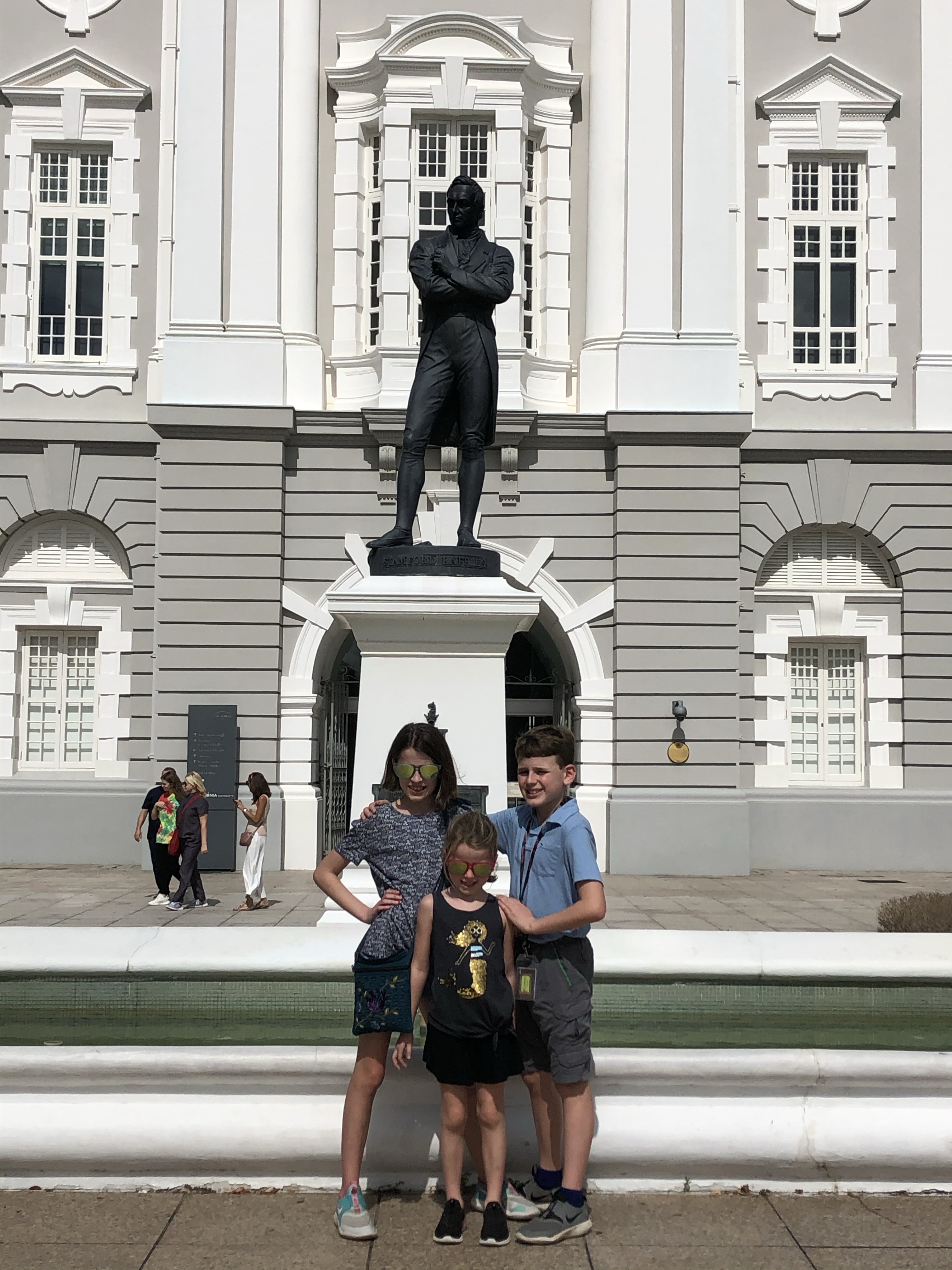 It is named for Stamford Raffles who was the British naval officer that was sent here to colonize Singapore. Many countries in Asia have a complicated relationship with their colonizers. Singapore seems to have a very comfortable relationship with their history. My guess is that this is because their period of British colonization ended peacefully (they were originally part of Malaysia after the British left but shortly after that, became an independent city nation). Singapore also is very business driven. I think the government realized early on that to retain a peaceful relationship with western nations was to their economic advantage. What do the local Chinese/Malay populations really think? I don’t know that answer.